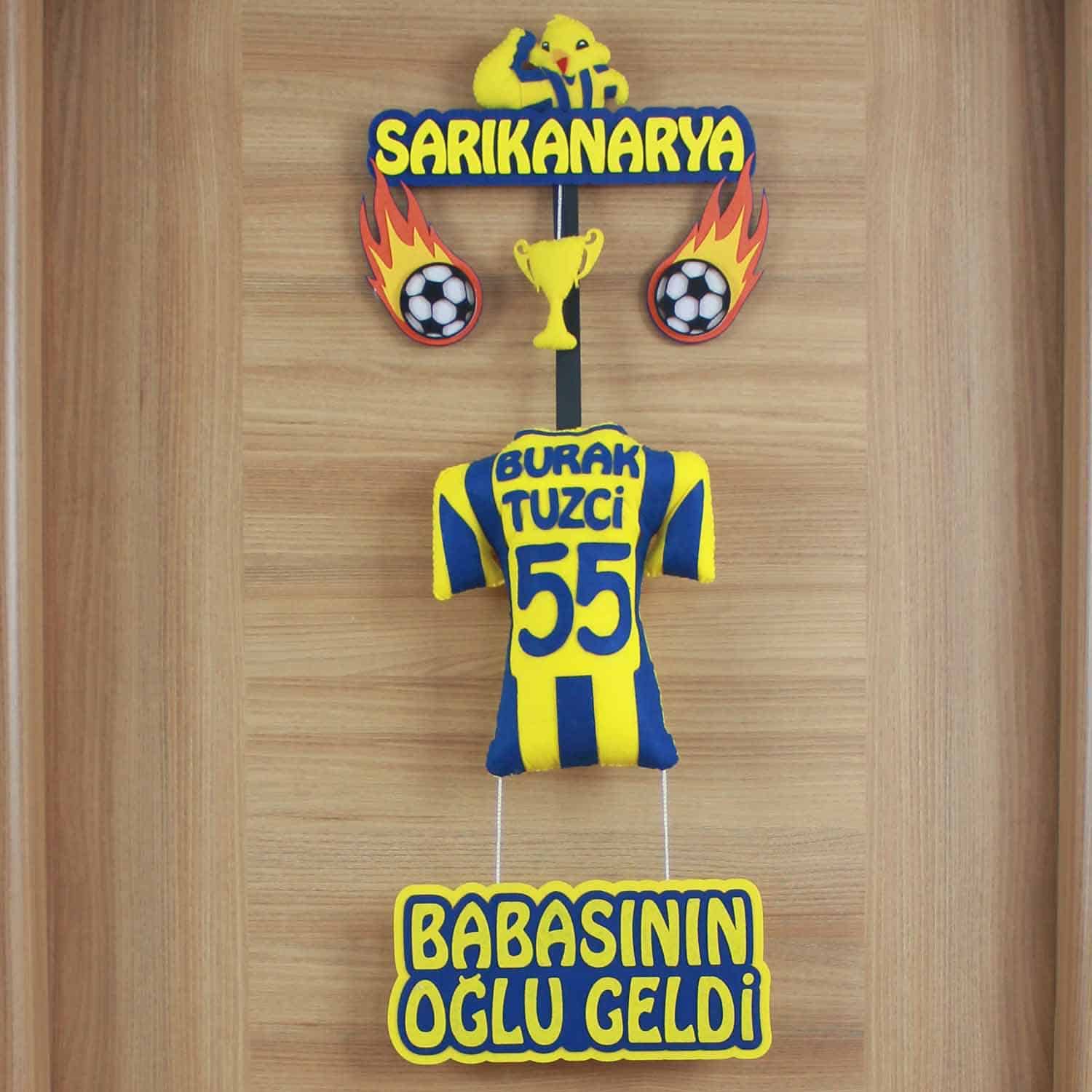 Şimdi keşfedin ve bu benzersiz bebek kapı süsü ile Burak’ın odasına geleceğe dair umutları, şampiyonluk azmini ve sarı lacivert sevdalı bir ruhu taşıyın. El yapımı bu değerli ürünle, minik misafirlerinize özgün ve anlam yüklü bir karşılama hazırlayın. Hayallerinizi somutlaştırın, çünkü küçük fanatiğinize en anlamlı dokunuş bu büyülü süste saklı! Minik Burak’a özel, parlayan bir gelecekle sadece sizin için tasarlandı.