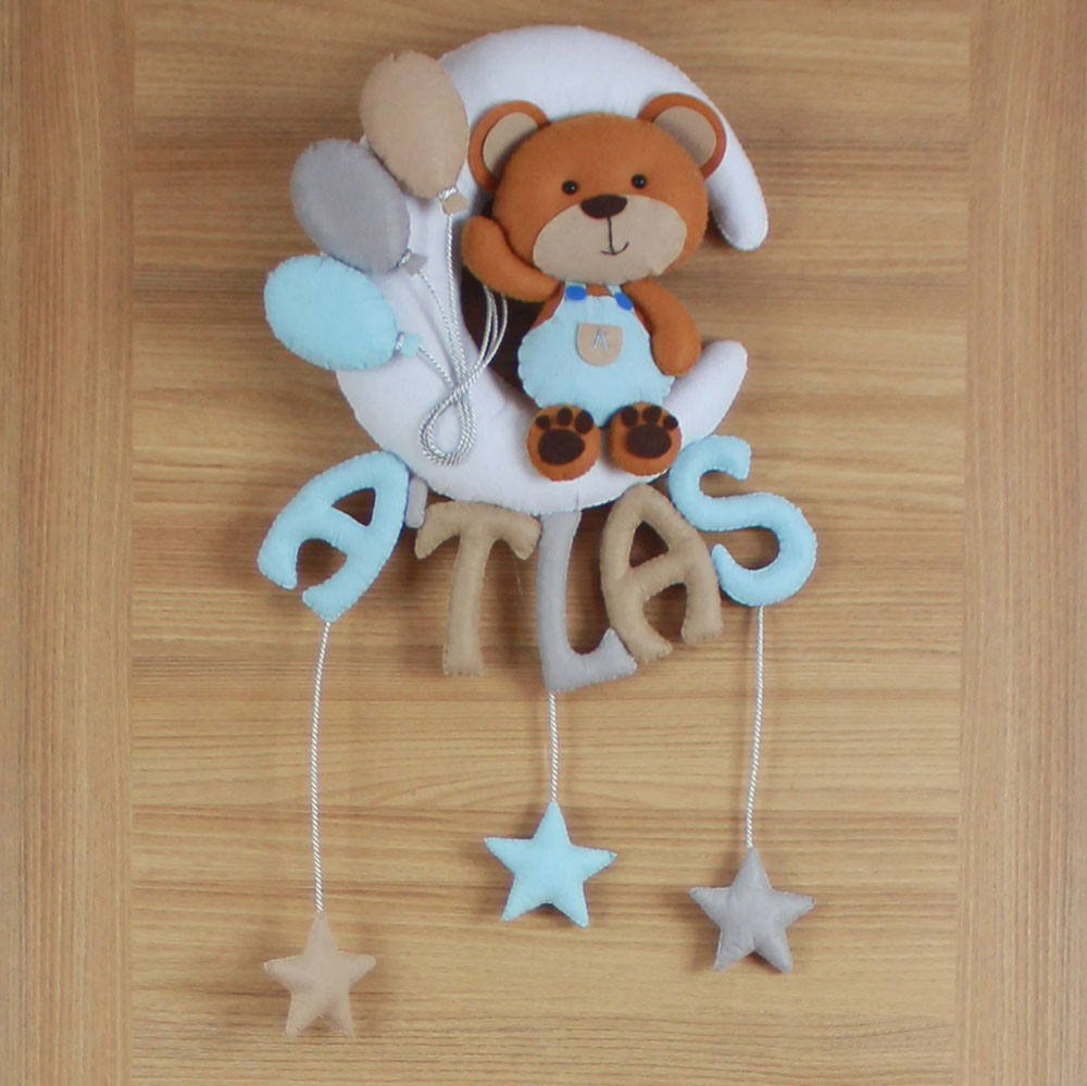 Atlas İsimli Aydede ve Ayıcık Temalı Keçe Bebek Kapı Süsü
