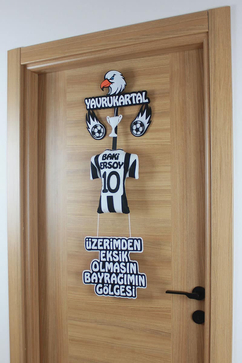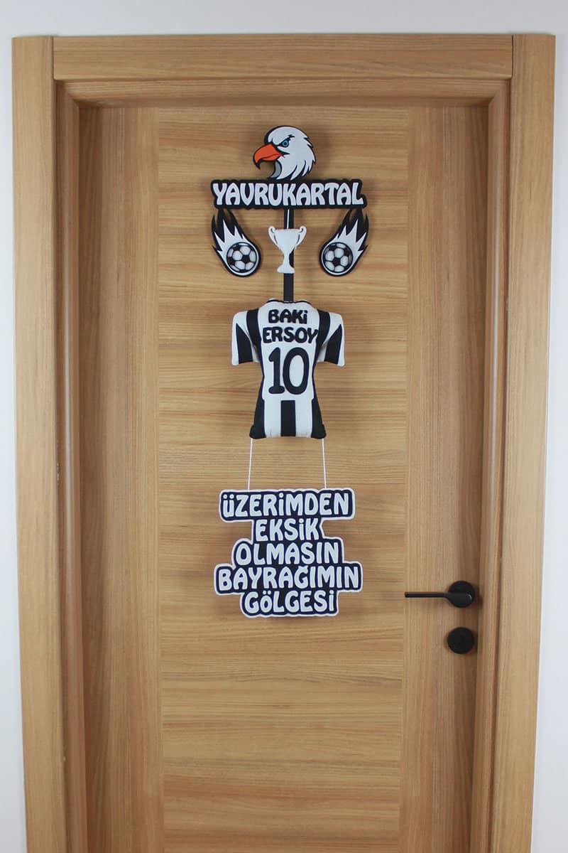 Bu kişiye özel kapı süsü, ailelerin spora olan tutkusunu ve takıma olan derin bağlılığını nazikçe vurgulayan, siyah beyaz ruhuyla bezeli anlamlı bir armağandır. Doğum hastane odasında ilk izlenimi oluşturacak bu benzersiz yenidoğan süsleme, sonrasında bebeğinizin odasının en kıymetli parçası olarak yerini alacak. Her bir detayı büyük bir titizlikle, el emeğiyle hazırlanan bu eser, biricik Baki Ersoy’unuz için sadece ona özel bir kutlama sunar. Bu göz alıcı erkek bebek dekoru ve **yavrukartal kapı süsü**, minik yüreklere adeta bir gurur madalyası gibi takılacak, ömür boyu saklanacak değerli bir hatıra olacak. Aynı zamanda, hastane odası süsü arayanlar için büyüleyici bir seçenek ve **taraftar** ruhunu yansıtan bebek hediyesi arayışında olanlar için de seçkin bir armağan!