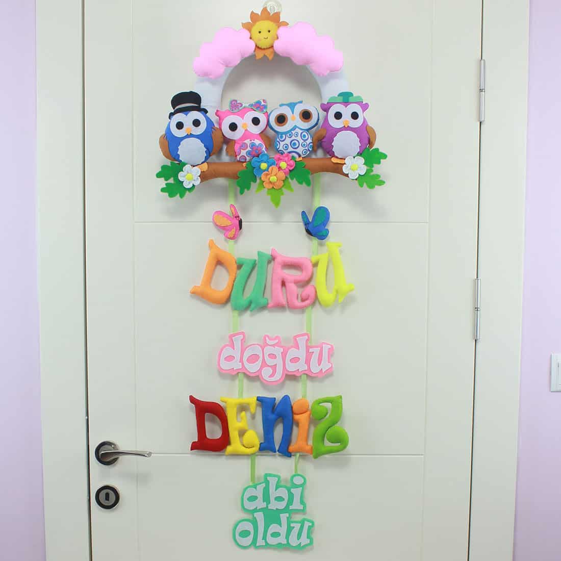 Duru ve Deniz İsimli Baykuş Ailesi Kardeş Kapı Süsü ile Minik Bilgelerinize Sıcak Bir Karşılama!