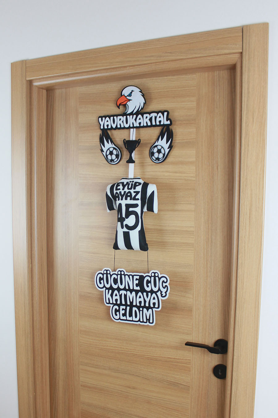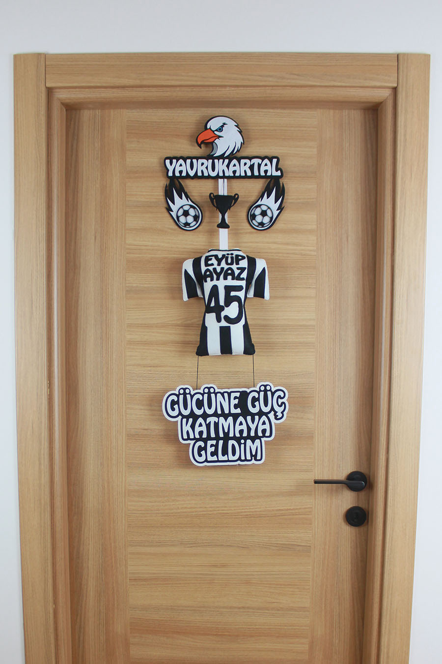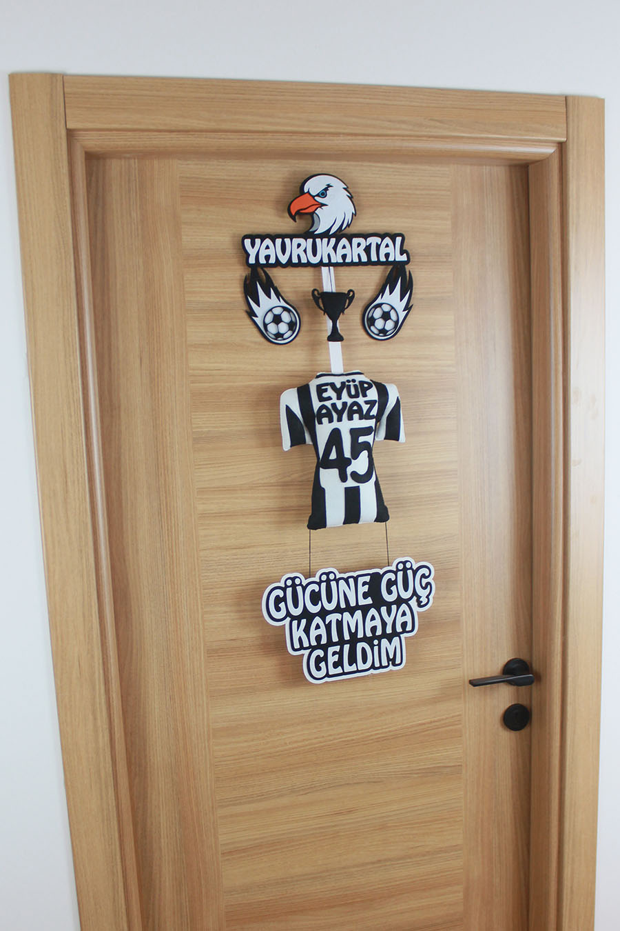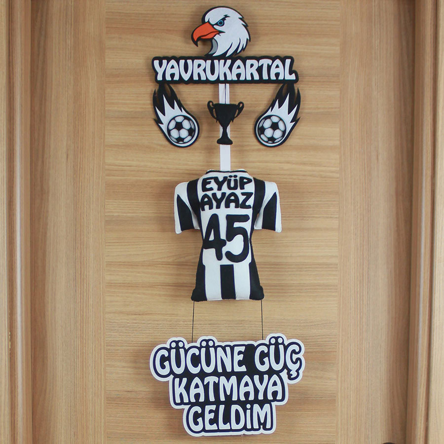 Eyüp Ayaz İsimli Yavrukartal Siyah Beyaz Temalı Keçe Kapı Süsü