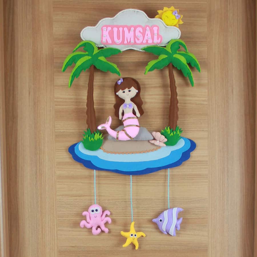 Bu tasarım, tamamen Kumsal’a mahsus; onun o güzel ve doğal ismiyle, bir deniz kızının zarafeti ve gizemiyle ve ailenizin ona duyduğu o sonsuz sevgiyle değer kazanan, kişiselleştirilmiş, eşsiz bir parça. Siparişiniz üzerine, sevgi ve el emeğiyle özenle hazırlanan bu kişiye özel kapı süsü, özellikle kız bebek dekoru arayışında olanlar için büyüleyici bir hastane odası süsü seçeneğidir. Her bir detayı, bu minik prensesin ne kadar özgün olduğunu ve onunla başlayan bu masalsı yolculuğun ne denli değerli olduğunu anlatıyor.
