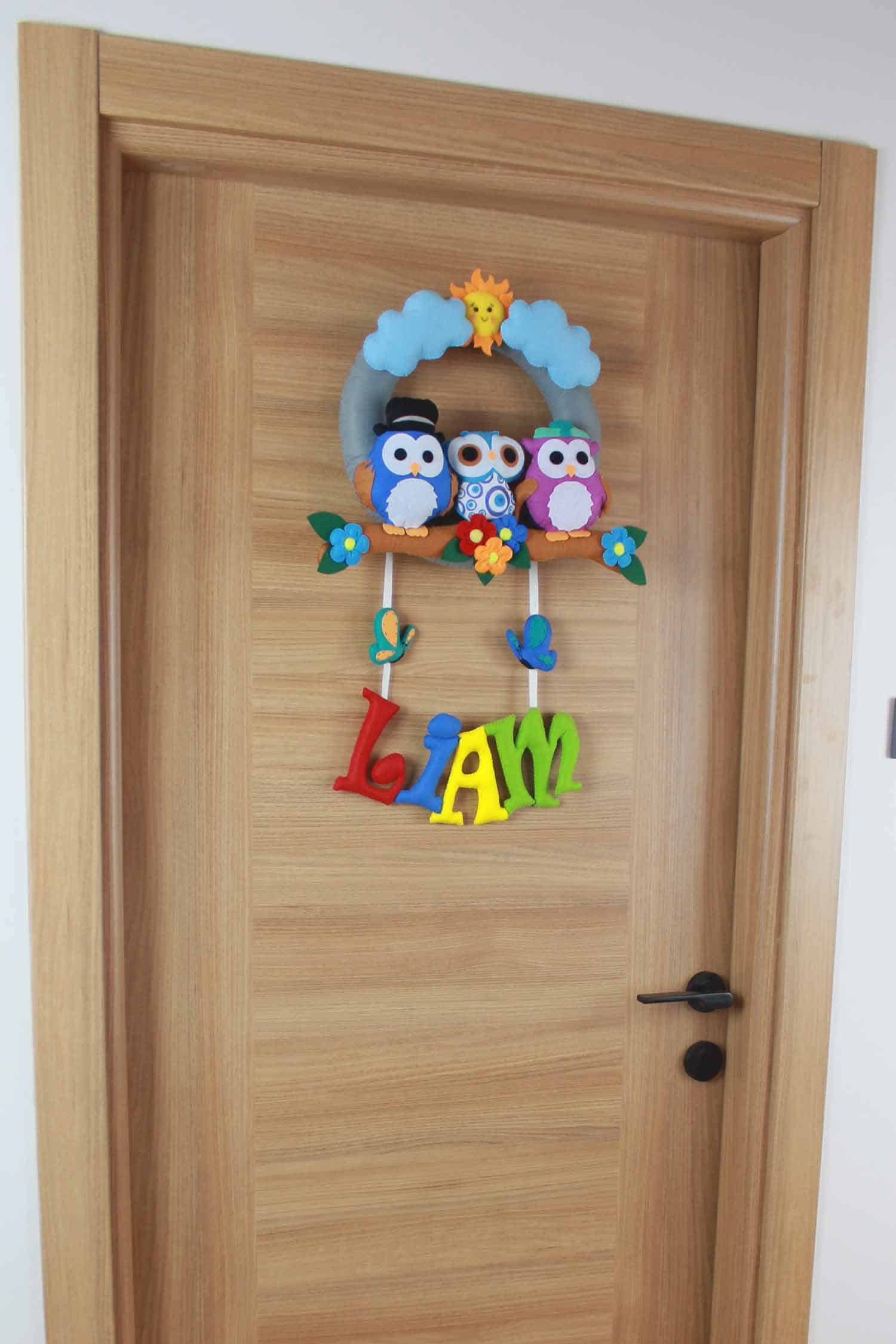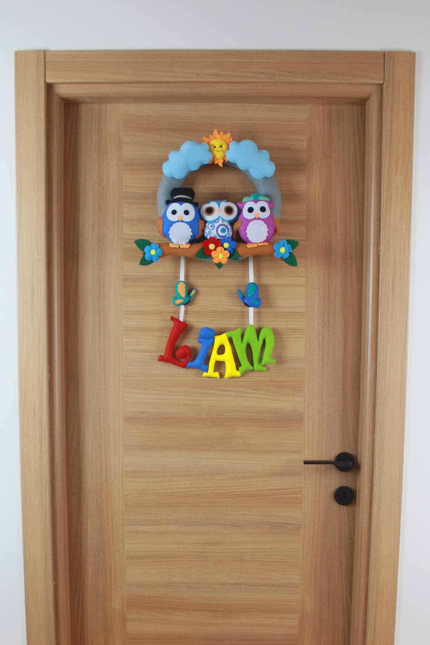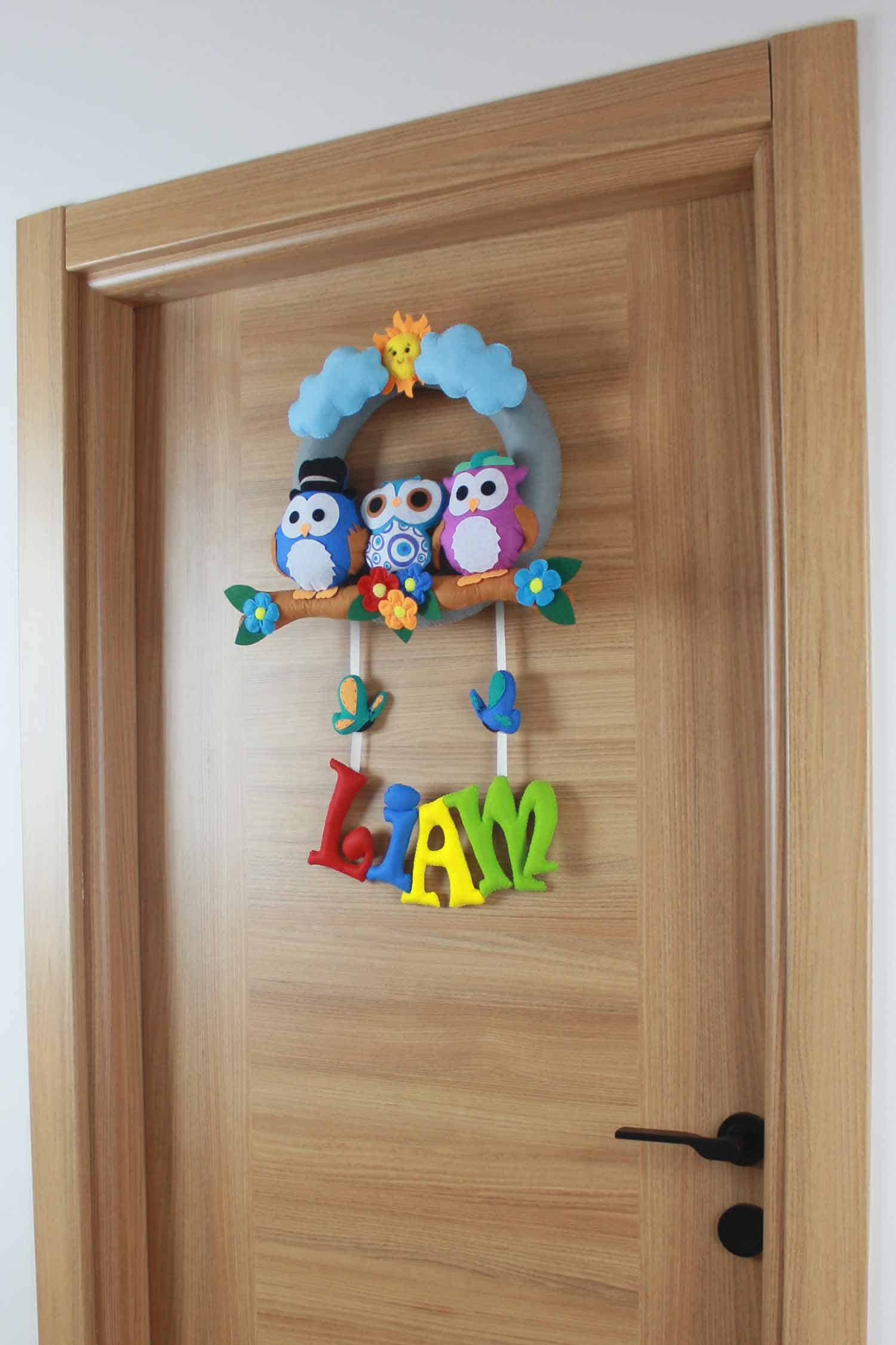 Liam İsimli Baykuş Bebek Kapı Süsü: Minik Bilgenizin Odasına Neşeli Bir Dokunuş!
