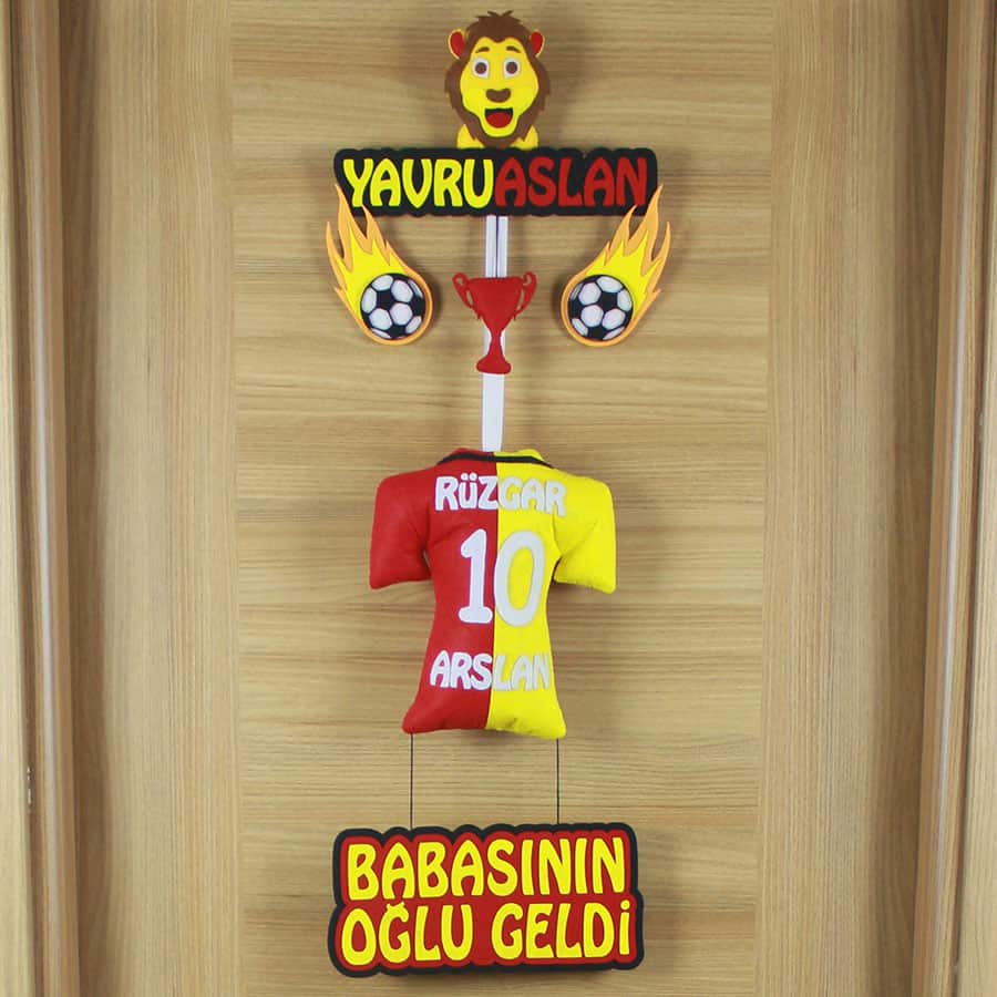 Bu kişiye özel kapı süsü, sarı kırmızı renklere gönül vermiş ailelerin kalpten bağlılığını modern ve estetik bir dille ifade eden, futbol coşkusuyla bezeli anlamlı bir armağandır. Doğum hastane odasında misafirlerinizi etkileyecek ilk izlenimi bırakırken, sonrasında bebeğinizin odasında asil bir erkek bebek dekoru olarak ömür boyu yerini alacak. Her bir detayı büyük bir özenle, el emeğiyle hazırlanan bu eser, biricik Rüzgar Arslan’ınız için sadece ona özel bir kutlama sunar. Bu göz alıcı yavru aslan kapı süsü, sevdikleriniz için unutulmaz bir bebek hediyesi seçeneği olup, aynı zamanda eşsiz bir Rüzgar Arslan kapı süsü olarak da öne çıkar. Bebek kapı süsleri arasında fark yaratacak, hem anlamlı hem de şık bir tercih olan bu ürün, yenidoğan süsleme ve **hastane odası süsü** ihtiyacını karşılayan ideal bir seçimdir.