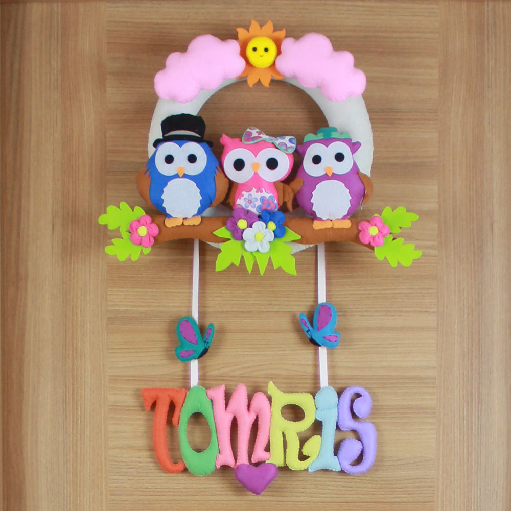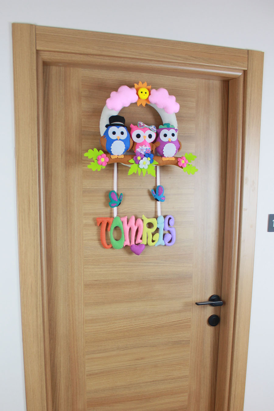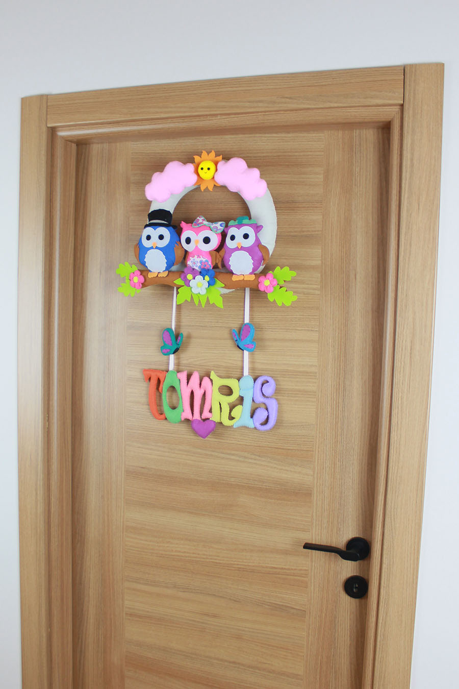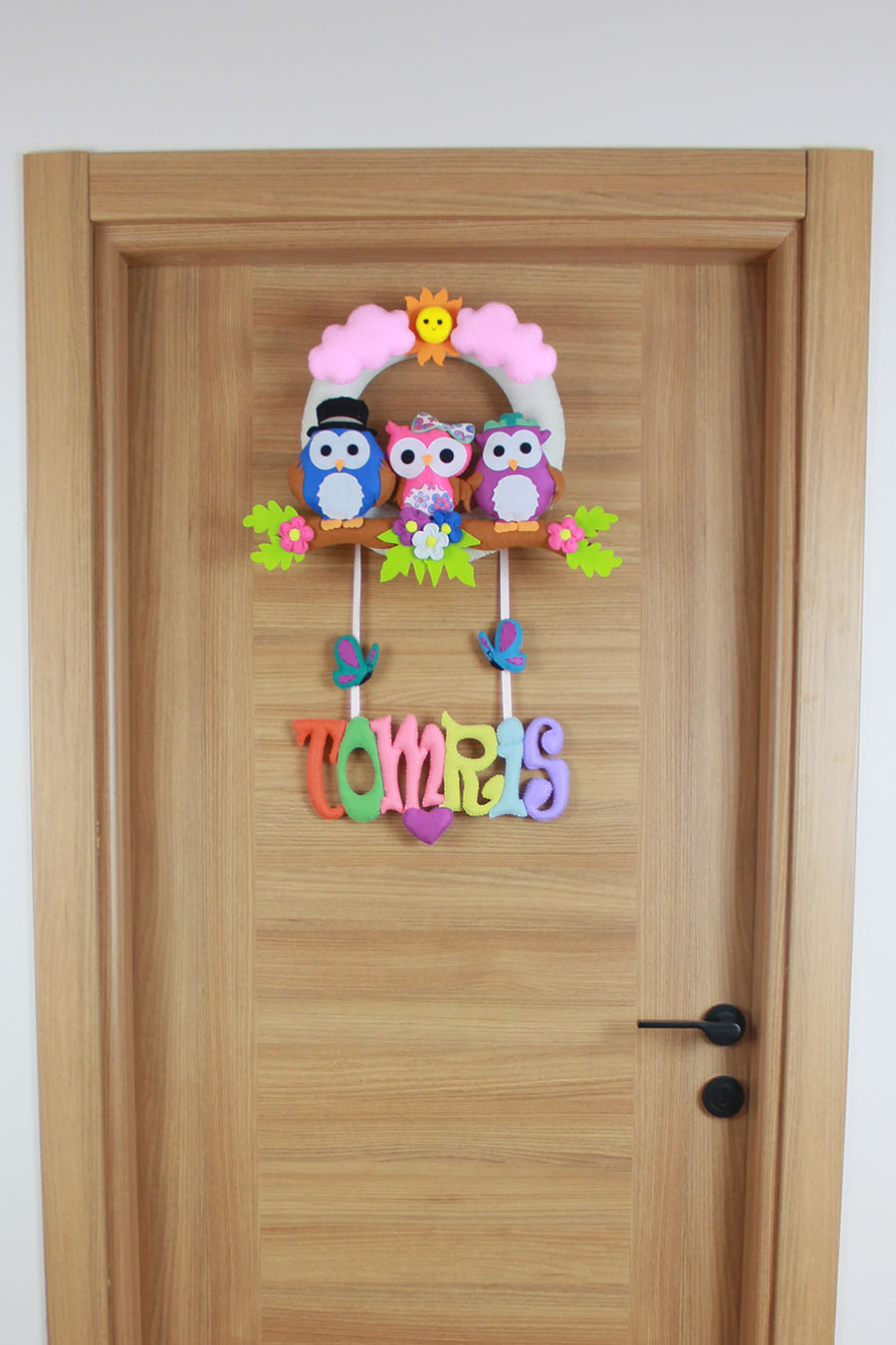Tomris İsimli Baykuş Ailesi Keçe Bebek Kapı Süsü