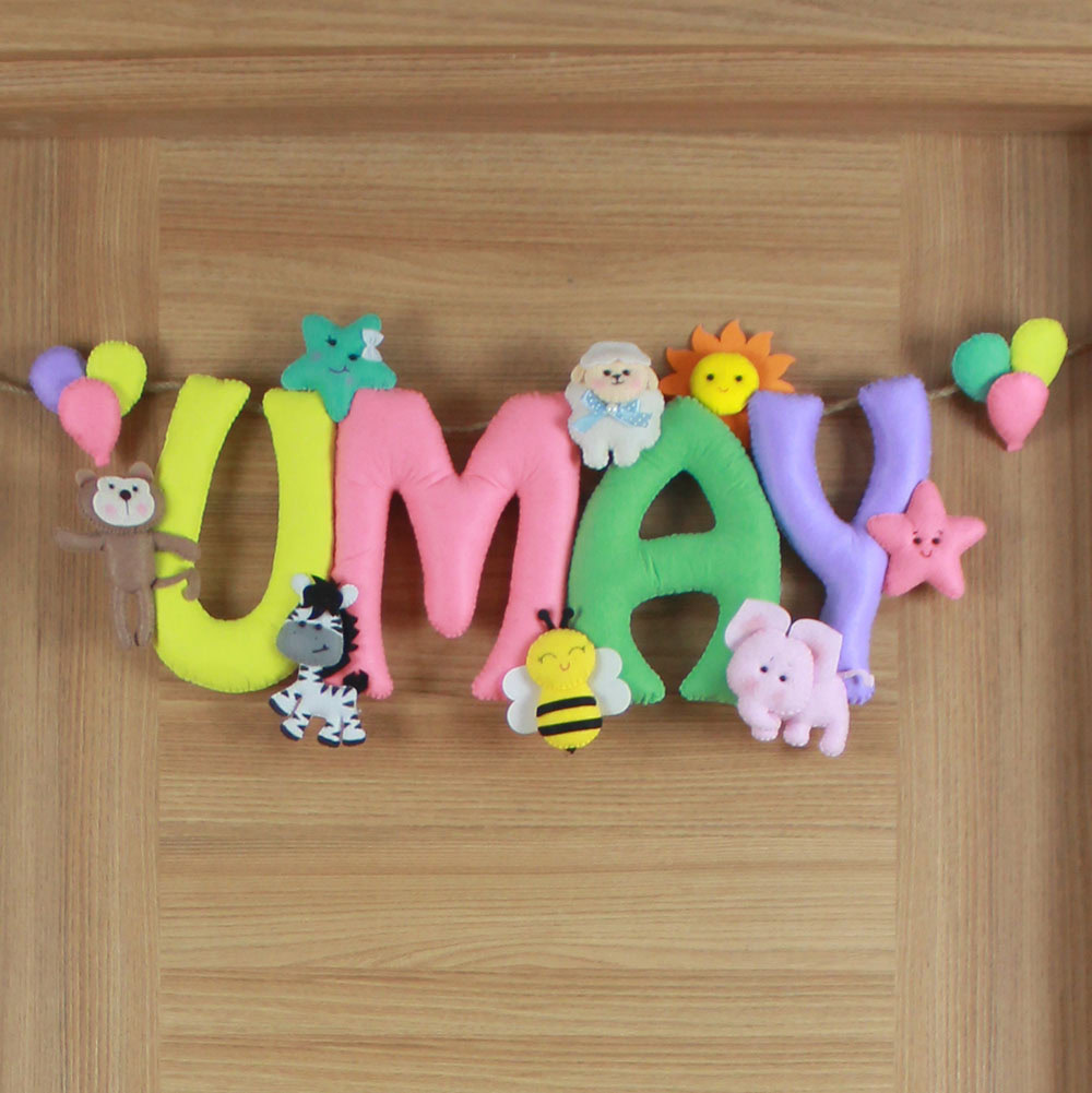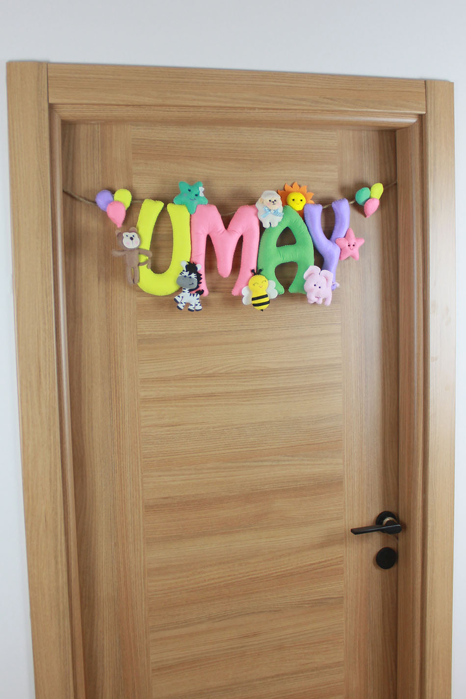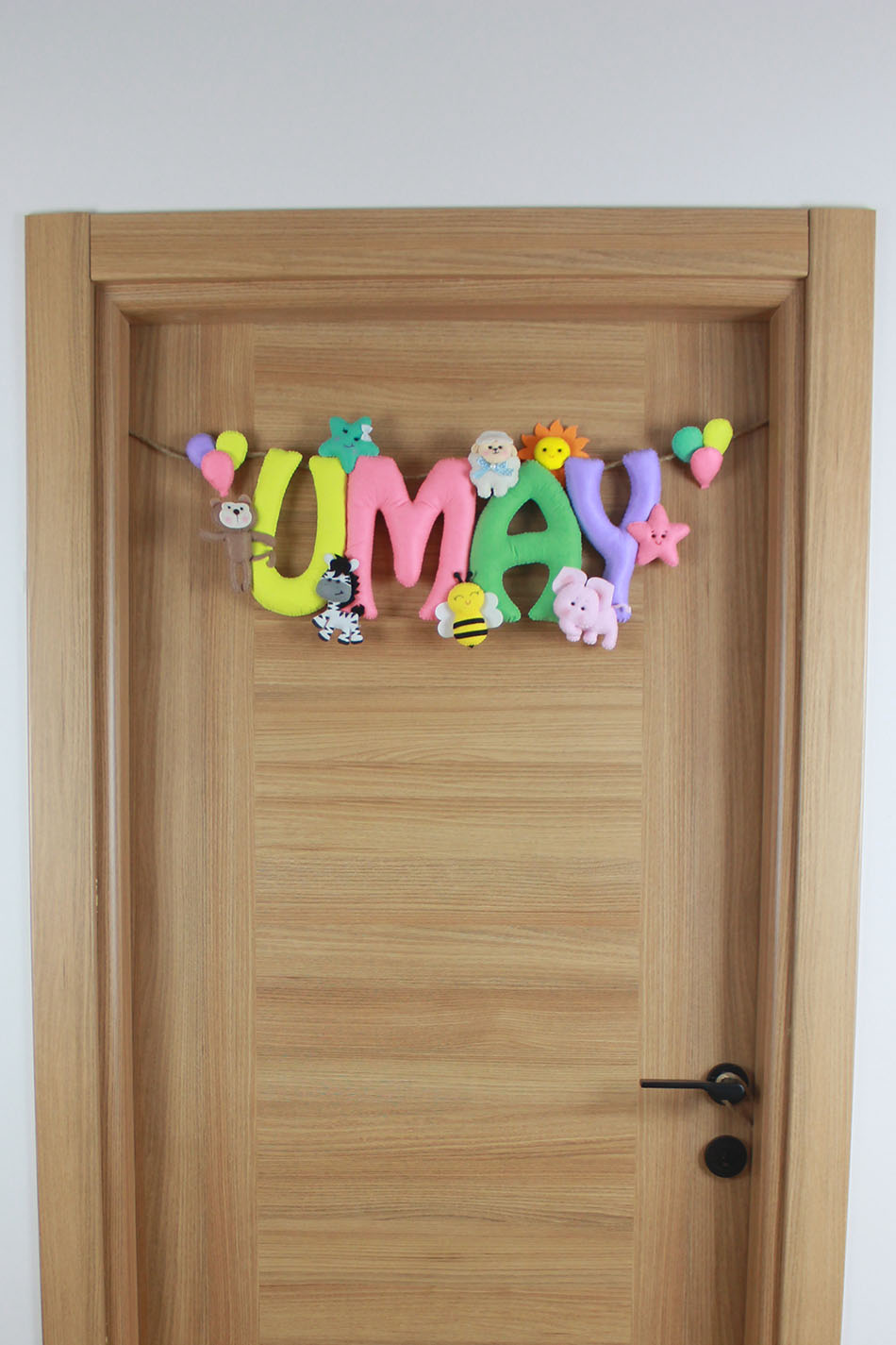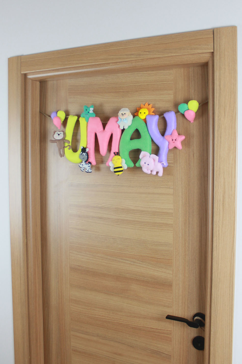 Umay İsimli Safari Hayvanları Temalı Keçe Bebek Kapı Süsü
