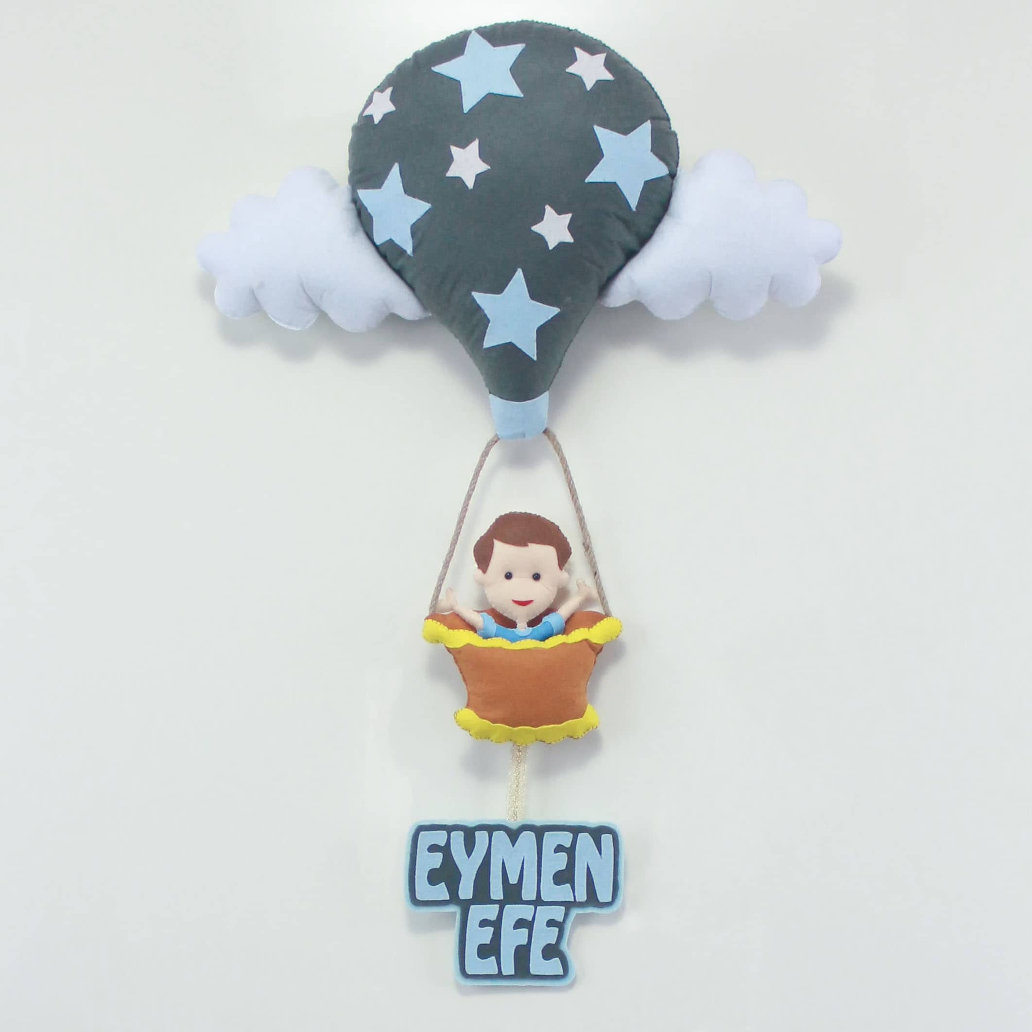 - Kullanılan Figürler: Renkli büyük sıcak hava balonları, balon sepeti, bulutlar, kız ve erkek çocuk figürleri yumuşak ve elyaf dolguludur. İsim ve yazılar dolgusuz keçedir.
